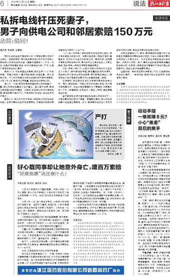 男子私自拆除自家屋旁电线杆,不想导致妻子被压不治身亡。悔恨的同时,男子起诉要求电线杆产权方供电公司和电线杆拆除后的受益人隔壁邻居赔偿150万元。近日,仙居法院审理此案后,判决邻居适当补偿3万元,驳回了原告的其他诉讼请求。
