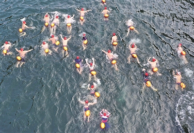 12月20日,2020“绝美张家界·畅游宝峰湖”公开水域(冬泳)活动在湖南张家界宝峰湖景区举行,来自贵州、湖北、广东等地的千余名冬泳爱好者参加比赛。人们在畅享冬泳带来的健康和快乐的同时,感受张家界奇美山水的魅力。