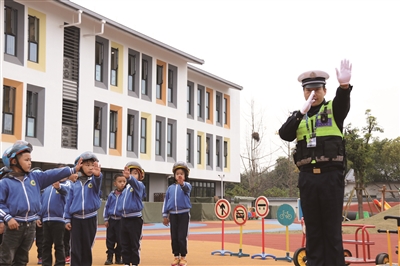 近日,长兴县公安局水口派出所交警中队民警走进水口幼儿园,开展交通安全宣传教育活动。民警为孩子们讲解交通安全知识,结合身边的事故案例强调遵守交通法规的重要性。为了让孩子们了解交警指挥手势的含义,民警还现场演示交警指挥手势。