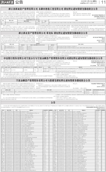 浙江浙北资产管理有限公司 蔡龙标 债权转让通知暨债务催收联合公告