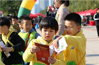 | 12月4日,台州市联合椒江区、台州湾新区在市民广场共同举办宪法日广场法治宣传活动。市普法办、椒江区普法办、台州湾新区审计局与司法局等90多家部门单位200余名普法志愿者参加现场活动。图为法官向小朋友们发放《民法典与生活同行》普法手册。 |