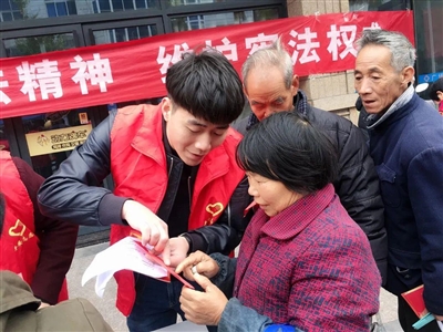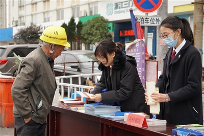 | 12月2日,三门县检察院联合县人大在健跳镇开展宪法宣传活动。向群众讲解宪法内容,宣讲法律知识,开展宪法教育。图为检察院干警向市民发放宣传资料。 |