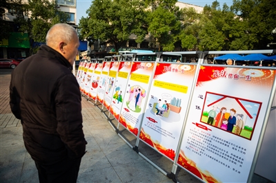 | 12月4日,临海市检察院组织开展“深入学习宣传习近平法治思想 大力弘扬宪法精神”主题广场法治宣传活动。通过法律咨询、发放宣传资料等形式,向过往群众宣传宪法、民法典、社区矫正法等。图为市民通过展板了解宪法知识。 |