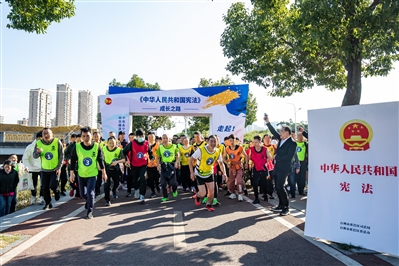| 12月4日,黄岩区司法局以“千年永宁德为首,中华橘源法当先”为主题,举行宪法主题绿道健身走比赛。一条健身步道,也是一条普法“律”道,让群众参与者在健步而行的同时,学习宪法知识,使普法更有传承、更接地气、更具趣味。 |