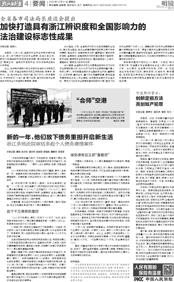 2021年即将开启,朱某和刘某也将放下重担,展开人生新的一页。新昌县法院分别作出裁定,终结朱某和刘某个人债务清理程序。这意味着,这两名被执行人将从债务的枷锁中解脱出来。