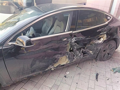 “不仅酒店遭了殃,花坛里的盆栽也撞烂了不少,另一辆特斯拉车的左侧车身全部凹了进去。”目击者称。