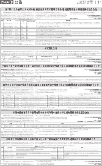 恒丰银行股份有限公司杭州分行 浙江省浙商资产管理有限公司 债权转让通知暨债务催收联合公告