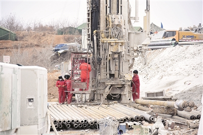 在漫长的等待之后,钻机打孔的声音传来,他们的期待获得回应!