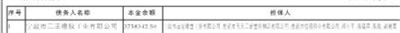 附:公告清单单位:人民币元 注:1、本公告清单列示截至2020年3月21日的贷款本金,借款人和担保人应支付给王雪东的欠息等其他费用按借款合同、担保合同的有关规定计算。 2、若借款人、担保人因各种原因更名、改制、歇业、吊销营业执照或丧失民事主体资格的,请相关承债主体及/或主管部门代位履行义务或履行清算责任。 3、清单中“担保人”包括保证人、抵押人、出质人。 4、具体担保金额以签订的担保合同等法律文件为准。 |