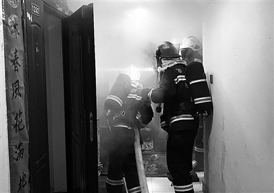 “当时客厅的火势已经很大,温度很高,最危险的就是被困人员盲目向外逃生。”参与救援的消防人员告诉记者,他们刚到达现场时,从外面就能明显感觉到房门的温度已经很高,为了尽快搜救被困人员,指挥员通过询问房门密码开锁后,立即安排攻坚组消防员在水枪的掩护下进入房间搜救被困人员,同时积极扑救客厅火势。