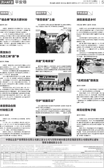 中国信达资产管理股份有限公司浙江省分公司与东阳市城市建设投资集团有限公司债权转让通知 暨债务催收联合公告