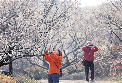 随着气温逐步回升,杭州市余杭区超山景区里的5万多株梅花近日进入盛花期,如飞雪漫空,呈现出千树万树梅花开的景象。