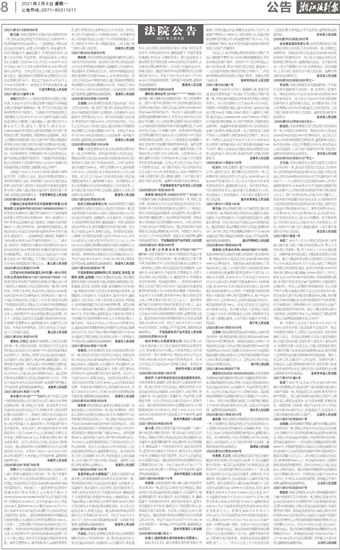 江宝坤:本院受理的原告俞宝松与被告江宝坤买卖合同纠纷一案,现依法向你公告送达本院(2020)浙0481民初4970号民事判决书。本院判令被告江宝坤应于本判决生效之日起十日内支付原告俞宝松货款70602元及利息损失(以70602元为基数、自2020年8月7日起按同期全国银行间同业拆借中心公布的贷款市场报价利率的1.5倍计算至实际履行之日止)。自发出本公告之日起,经过60日即视为送达。海宁市人民法院