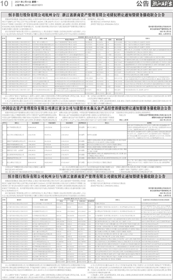 恒丰银行股份有限公司杭州分行与浙江省浙商资产管理有限公司债权转让通知暨债务催收联合公告