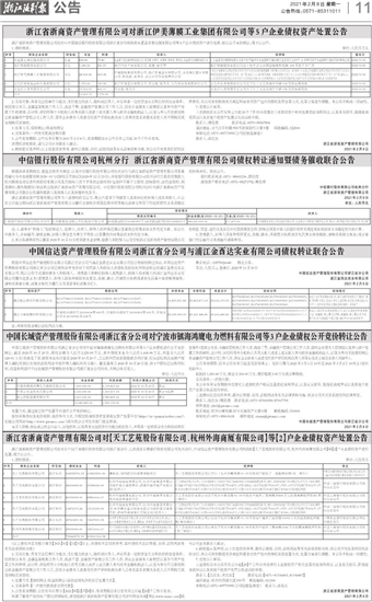 中信银行股份有限公司杭州分行 浙江省浙商资产管理有限公司债权转让通知暨债务催收联合公告