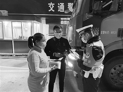 连日来,苍南交警安排警力24小时驻扎桥墩省际卡点,检查过往中大型车辆,做好登记备案工作,把好浙江“南大门”。通讯员 林花花