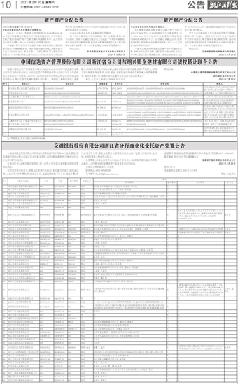 交通银行股份有限公司浙江省分行商业化受托资产处置公告