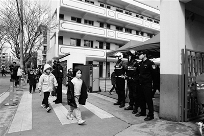 3月2日,舟山市公安局定海区分局城东派出所依托联勤警务站交警、派出所、巡特警“三警融合”机制,细化护学勤务,采用定点站岗、铁骑车巡、警车日巡相结合的方式,加强对校园及周边重点时段的巡防巡控,为师生返校营造良好的社会治安环境。通讯员 程栋权 本报记者 郑嘉男