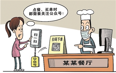 如今,消费者在饭店用餐时,扫码点餐已十分普遍。但部分餐厅点餐、买单时,要求强制关注微信公众号,有的还需要输入手机号、生日、姓名等。本来只想安静地吃个饭,没想到却被“收割”一波个人信息,不少顾客顿觉饭菜“不香”,商家“流量捆绑”何时休?