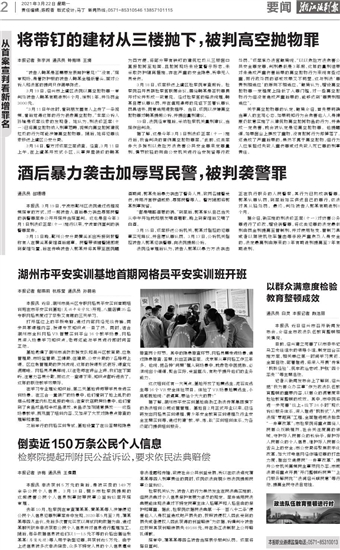 将带钉的建材从三楼抛下,被判高空抛物罪