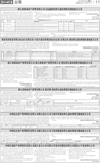 浙江省浙商资产管理有限公司 浙江浙泰资产管理有限公司 债权转让通知暨债务催收联合公告
