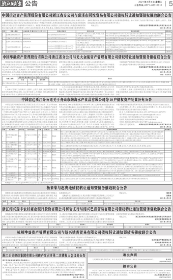 中国信达资产管理股份有限公司浙江省分公司与慈溪市同悦贸易有限公司债权转让通知暨债权催收联合公告