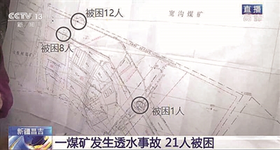 4月10日18时10分许,新疆维吾尔自治区昌吉州呼图壁县雀尔沟镇丰源煤矿矿井在技术改造过程中突发透水事故,导致井下电力和通讯中断。初步了解,事故发生时当班井下29人,已有8人安全升井,还有21人被困井下。