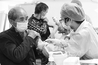 4月12日一早,宁波市海曙区章水镇卫生院的高山医疗队带着刚收到的新冠疫苗,来到海拔700多米的里梅村,为村民免费接种。这也是海曙区首次将疫苗接种引入高山村落,为村民提供“家门口服务”。考虑到当地高龄老人多,村里20多名党员义务当起了志愿者,帮助老人登记,告知注意事项。对于行动不便的高龄老人,志愿者们还备好车辆和轮椅,负责来回接送。