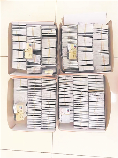 随后,民警在汕头抓获购卡人郑某洪(化名),从他手中收缴了付德林“亲友团”所办的2818张银行卡。