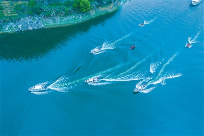 4月14日,浙江、安徽在新安江两省交界水域开展2021年浙皖渔业跨省联合执法行动,共同保护浙皖交界水域渔业资源和水域生态环境。