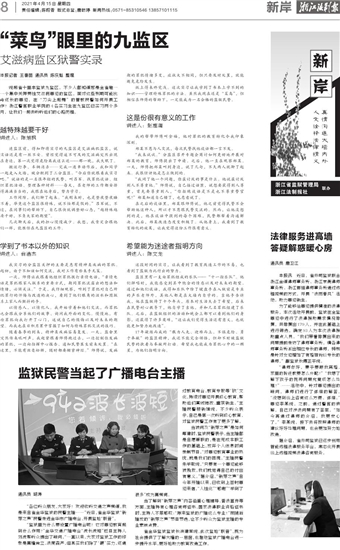 说起省十里丰监狱九监区,不少人都知道那是全省唯一一个集中关押男性艾滋病罪犯的监区。面对这些刑期可能比命还长的罪犯,在“刀尖上起舞”的管教民警如何开展工作?浙江警官职业学院的4名实习生在九监区已实习两个多月,让我们一起去听听他们的心路历程。