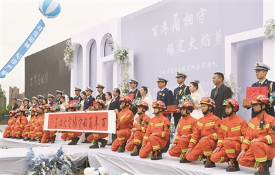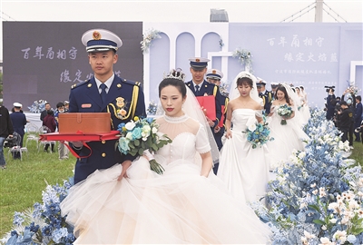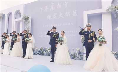 “我想跟你说的是,嫁给消防,就两个字——幸福!”昨天上午,宁波市消防救援支队在江北区文创港隆重举行集体婚礼,12对新人在队友及家属的见证和祝福下,开启幸福之门,许下爱的誓言。