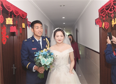 清晨5点,望春消防救援站灯火通明,消防站里挂起了灯笼、贴上了窗花,原来的“婆家”化身为“娘家”,救援站细心地为新娘们准备了12个房间。新娘们一个个穿上婚纱、盘起发髻、化上精致的妆容,等待着人生中最幸福的时刻。