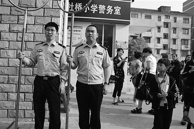 为预防校园欺凌和暴力事件的发生,连日来,临海市公安局杜桥派出所加强“护学岗”建设,安排警力每天在上学、放学时段“上岗”,带给师生们满满的安全感。通讯员 叶明銮 摄
