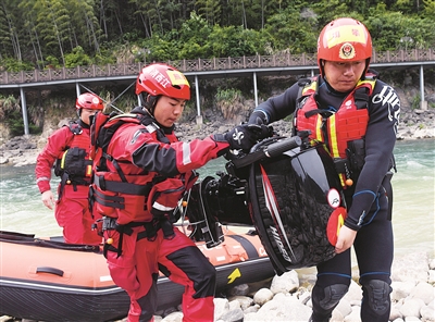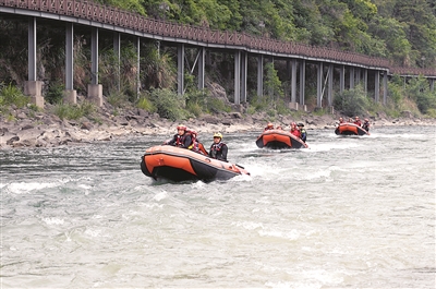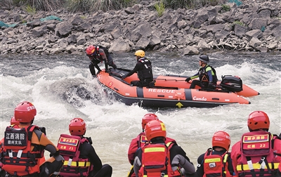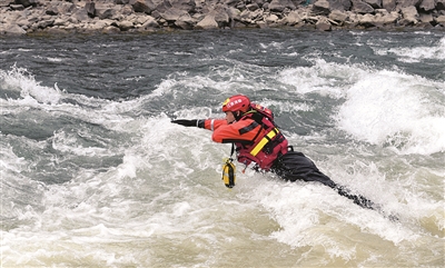 针对训练中出现的问题,教练员会展开针对性指导,“抛投的救援绳拉紧后才能加速,防止绳索缠进船桨;调头时要注意水流速度,防止船桨打到河底石头;船体在水流中的角度也要控制好,否则可能会被冲走。”