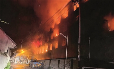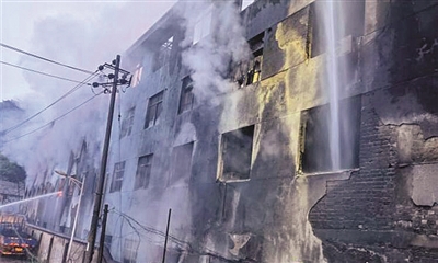 | 厂房外立面烧成这样,足见当时有多危险 |