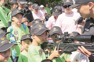 “特种装甲车和普通车辆的最大区别就是非常坚固,可以防弹,大家来近距离看看。”6月1日,湖州特警支队二大队教导员陈铭明向小小少年们热情介绍。看过了车,小朋友们还摸到了枪,“全部都是真枪哦,不是模型,所以大家千万不要随便乱动,要征询特警叔叔的意见后才能触摸。”
