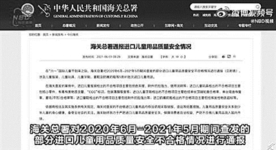 6月1日,海关总署通报一年来查发的部分进口儿童产品质量情况,涉及儿童服装、玩具、牙刷、童鞋及奶嘴奶瓶等5类81批次产品。其中,耐克、HM等10种品牌的部分儿童服装耐湿摩擦色牢度不合格,可能会导致染料或有害物质或通过皮肤、口腔等被人体吸收而危害健康。