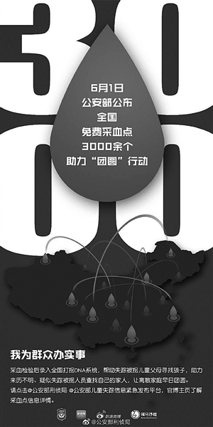 公安部公布全国3000余个免费采血点