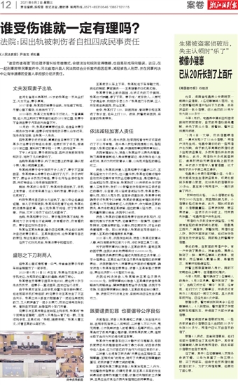 浙江法制报 案卷 00012 谁受伤谁就一定有理吗? 2021-06-02 2 2021年06月02日 星期三
