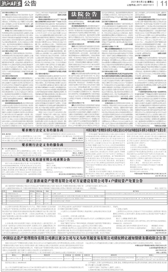 中国信达资产管理股份有限公司浙江省分公司与义乌市笑越贸易有限公司债权转让通知暨债务催收联合公告