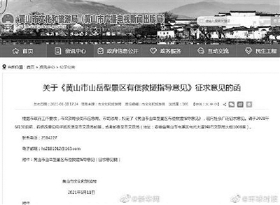 据黄山市文化和旅游局网站6月11日消息,根据黄山市政府工作要求,市文旅局会同市应急局、市司法局,拟定了《黄山市山岳型景区有偿救援指导意见》,现向社会广泛征求意见。