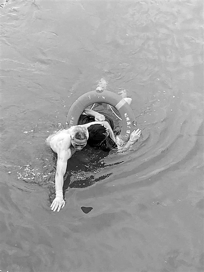 楼仁斌二话不说,迅速脱下外套,拿起救生圈,纵身跃入水中。游到该男子身边时,发现其意识清醒,但体力已明显不支,无法抓住套在身上的救生圈。