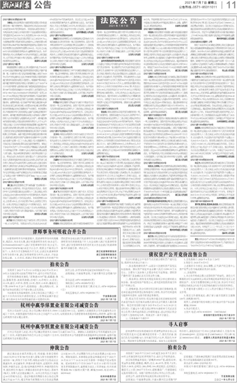 杭州中赢华恒置业有限公司减资公告