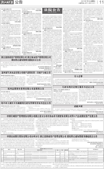 中国长城资产管理股份有限公司浙江省分公司对舟山市万润贸易有限公司等9户企业债权资产处置公告