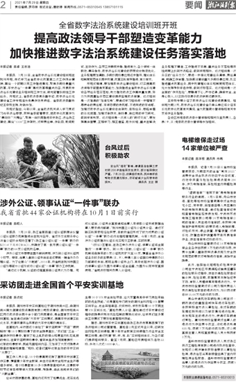 “通过这个机制,认证的过程直接由公证员代为办理。完成认证后,公证员会直接通知当事人来领取公证书或根据当事人要求进行邮寄。”杭州市国立公证处公证员介绍。通过不断实践探索和经验积累,目前我省已形成了较为成熟的公证认证“一件事”联办运行流程和管理机制。今年7月初,全省涉外公证数据与认证系统实现交互联通、实时共享。