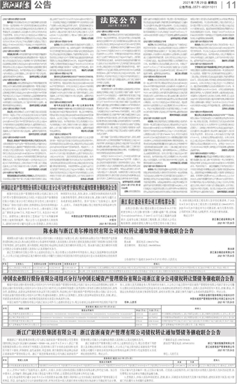 浙江广联控股集团有限公司 浙江省浙商资产管理有限公司债权转让通知暨债务催收联合公告