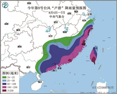 8月4日上午8时,今年第9号台风“卢碧”生成。预计8月5日上午从粤闽交界沿海登陆。受“卢碧”影响,4日至7日,江南东部和南部、华南中东部有大到暴雨,其中浙江东南部、福建东部、广东东部和南部、台湾岛等地部分地区有大暴雨,局地特大暴雨。气象专家提醒,“卢碧”携风雨来袭,广东、福建及浙江等地会受到持续的较强风雨影响,公众需加强防范,保证自身安全。