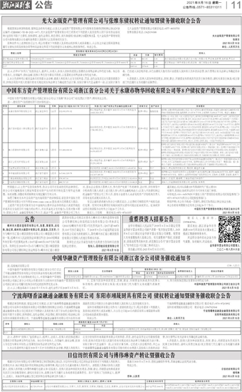 中国东方资产管理股份有限公司浙江省分公司关于永康市物华回收有限公司等8户债权资产的处置公告
