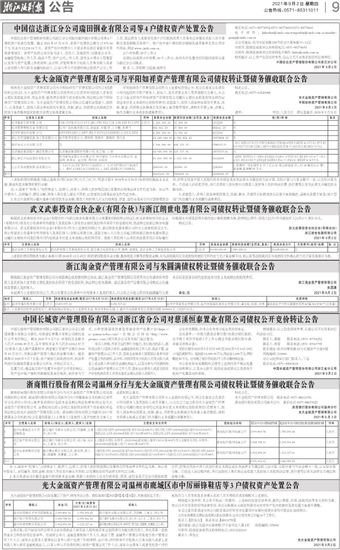 浙商银行股份有限公司温州分行与光大金瓯资产管理有限公司债权转让暨债务催收联合公告